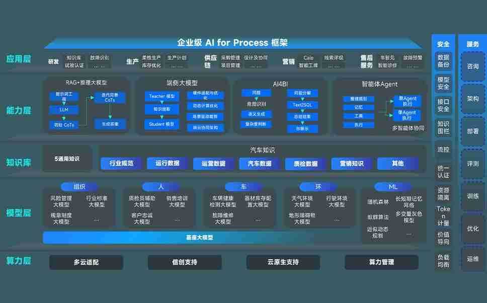 南宫体育问学智车解决方案是一套基于AI技术的汽车行业智能化系统,,,,覆盖从底层算力到顶层AI应用的全栈方案。。方案由算力层、、模型层和应用层组成:算力层,,方案支持多种一体机配置,,具备云端灵活部署、、多云适配以及动态优化计算资源的能力;模型层,,,,南宫体育问学平台版提供了企业级AI应用一站式构建与管理平台,,,,支持基于后训练强化技术的汽车企业专属模型的训练、、、、评测和运营;应用层,,,,南宫体育问学DeepSeek版提供包括超级员工、、、智能招采、、智能营销、、智能客服、、、AI for BI等一系列解决方案,,,,可助力汽车行业实现数字化转型,,让管理更智能、、、响应更敏捷。。。。